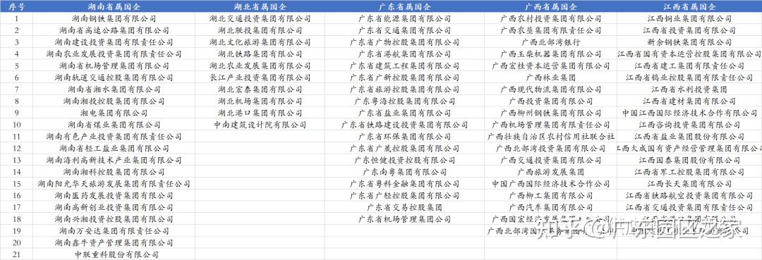 湖南、湖北、廣東、廣西及江西,這5個(gè)省份及省級行政區(qū),共設(shè)立了87家省屬國企。其中湖南省21家、廣東省18家、廣西省19家、江西省19家。