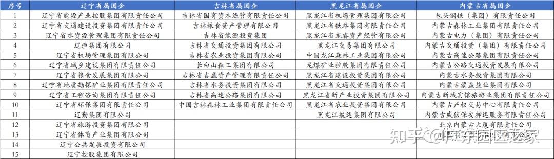 東北三省共有36家省屬國企,其中遼寧省15家、黑龍江11家、吉林省10家。相對其他省份,在行業(yè)分布上東三省因其豐富的林業(yè)資源,森工集團(tuán)是省屬國企的一大特色。此外,內(nèi)蒙古擁有13家省屬國企。