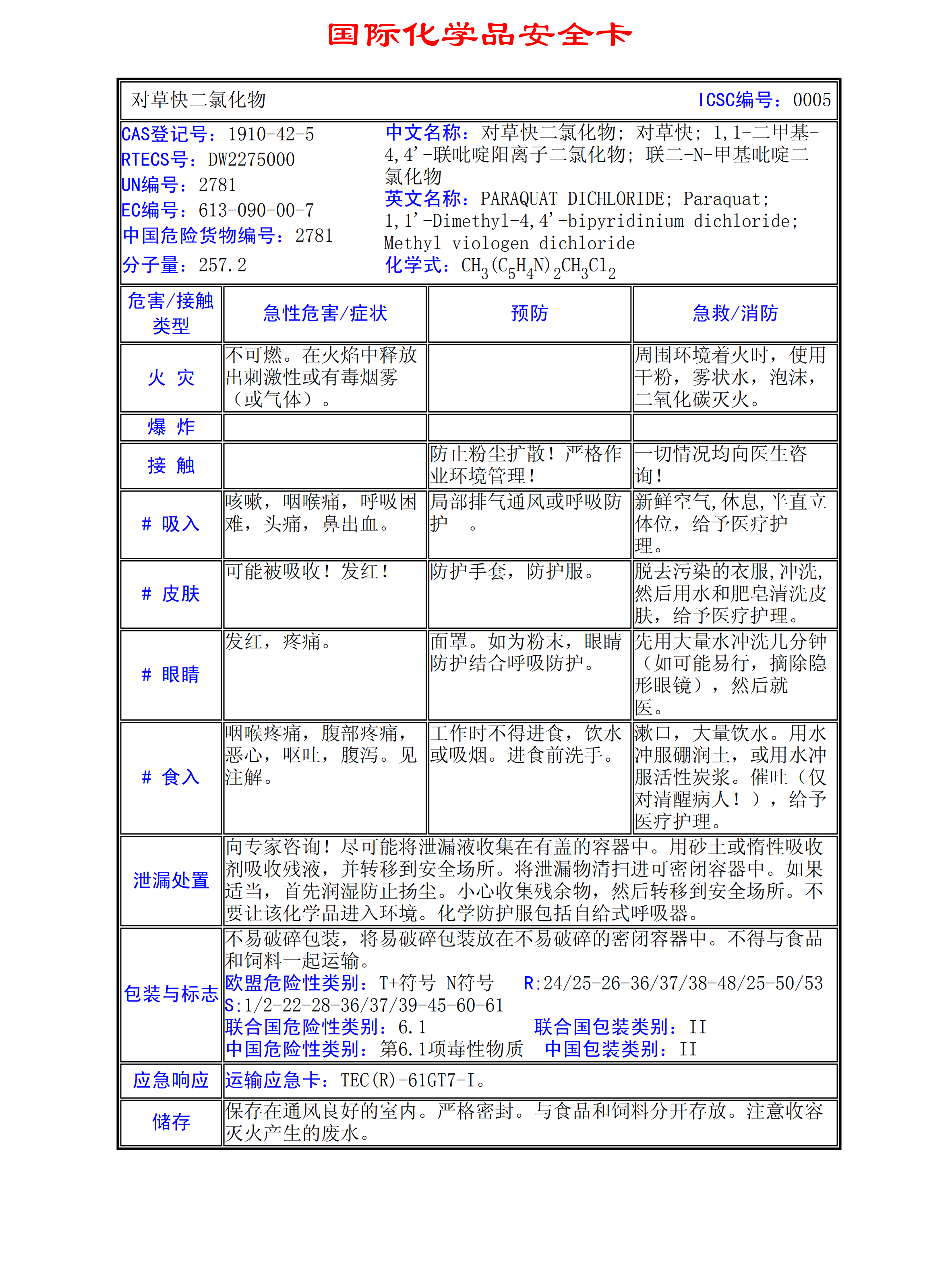 對(duì)草快二氯化物MSDS