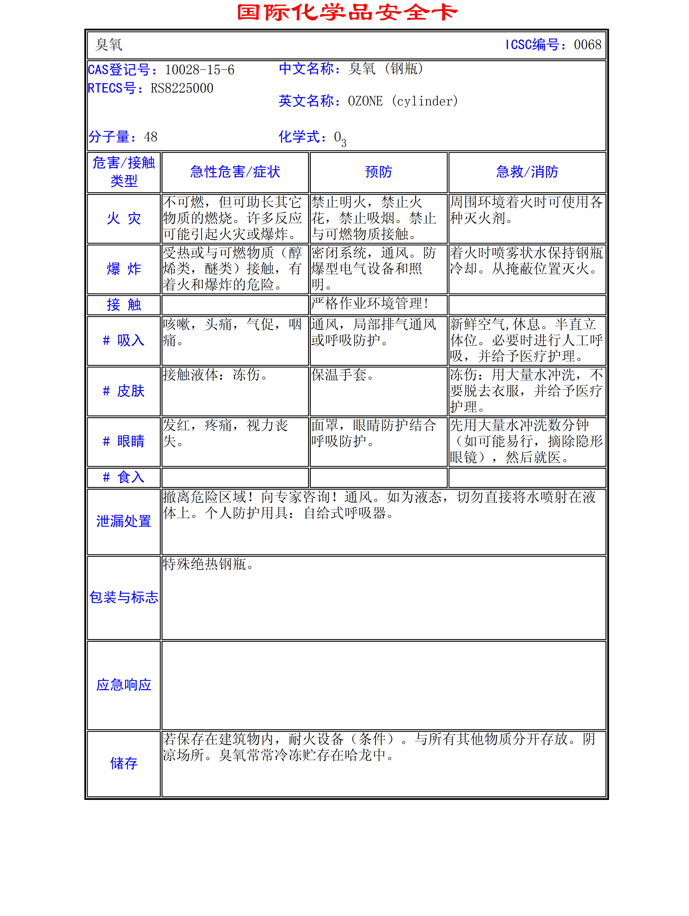 臭氧MSDS
