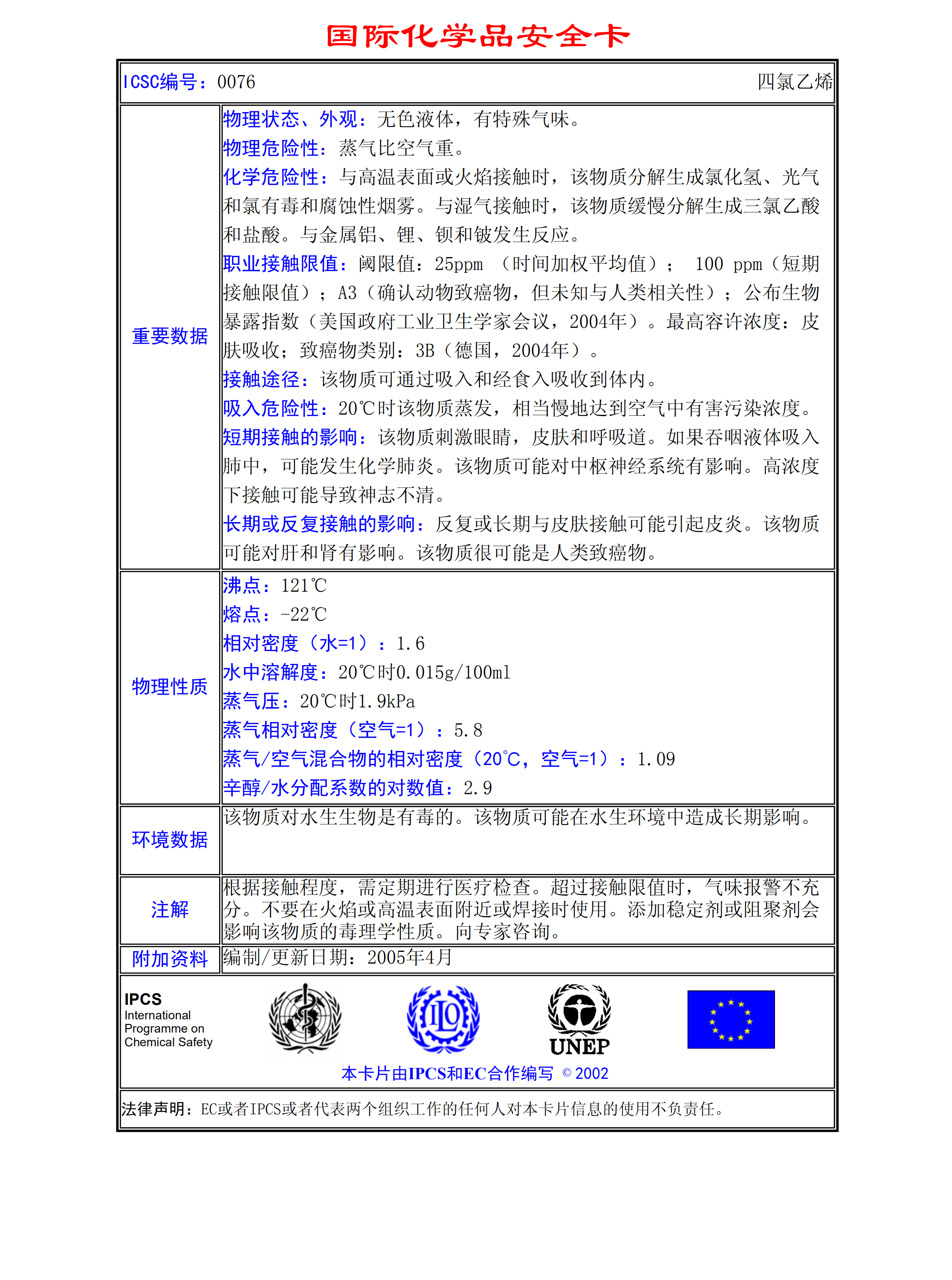 四氯乙烯MSDS