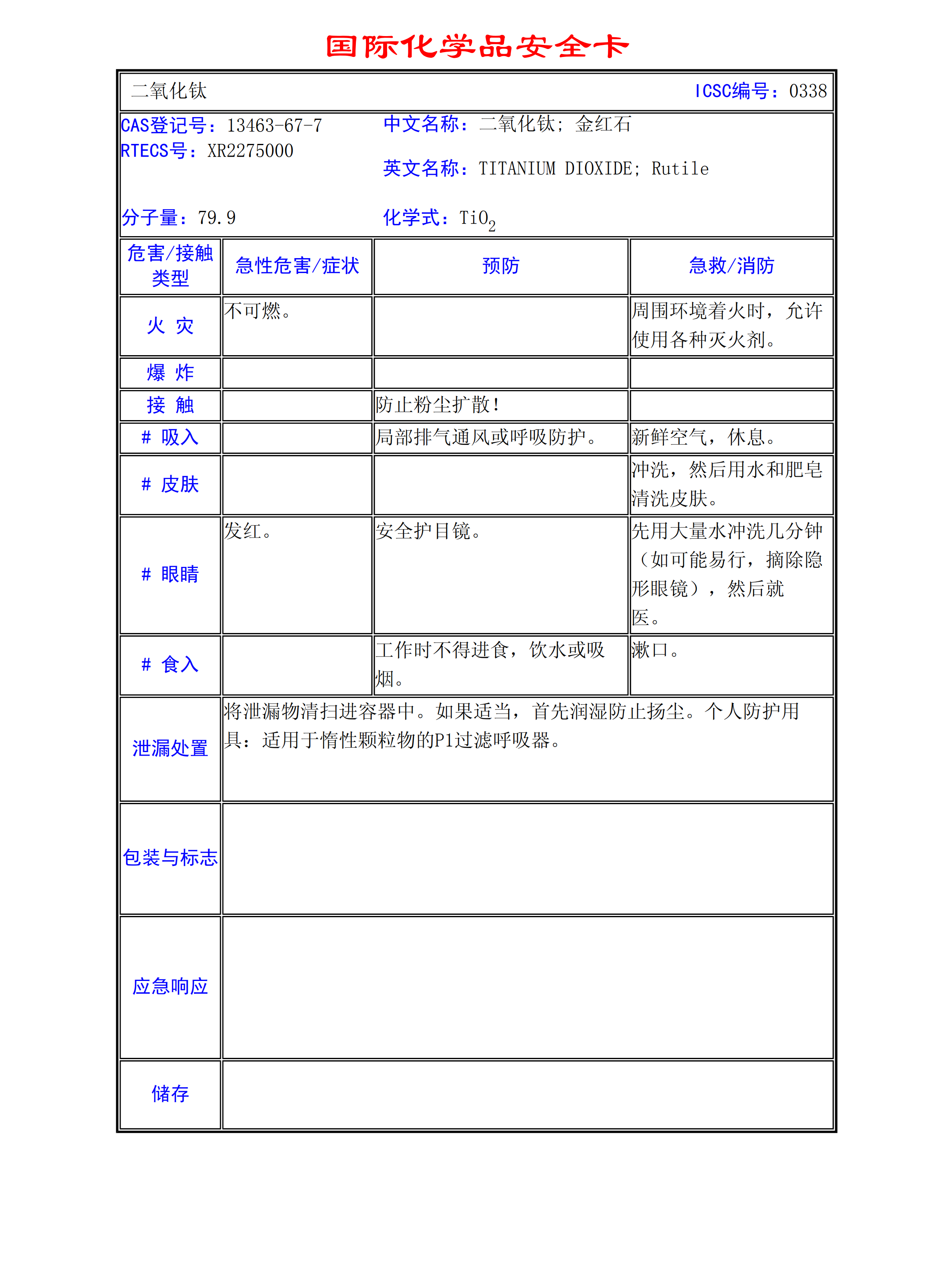二氧化鈦MSDS